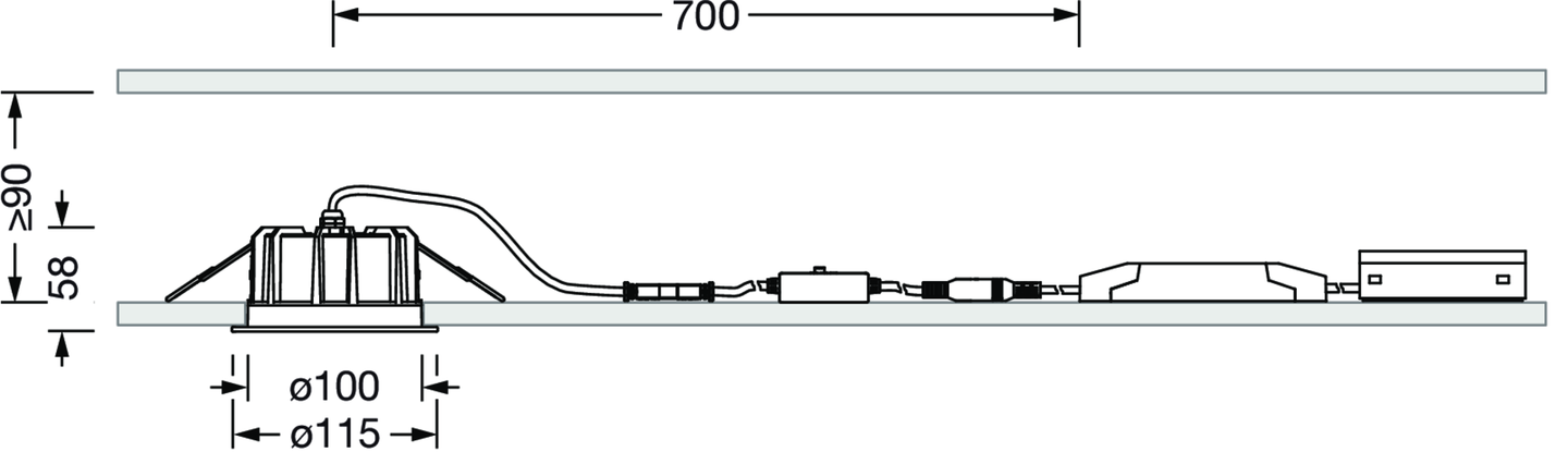 LED, Linse, PMMA, Abdeckscheibe, PC, opal, direkt breit strahlend, Einzelanordnung, Einbau, in der Decke, ø= 115mm