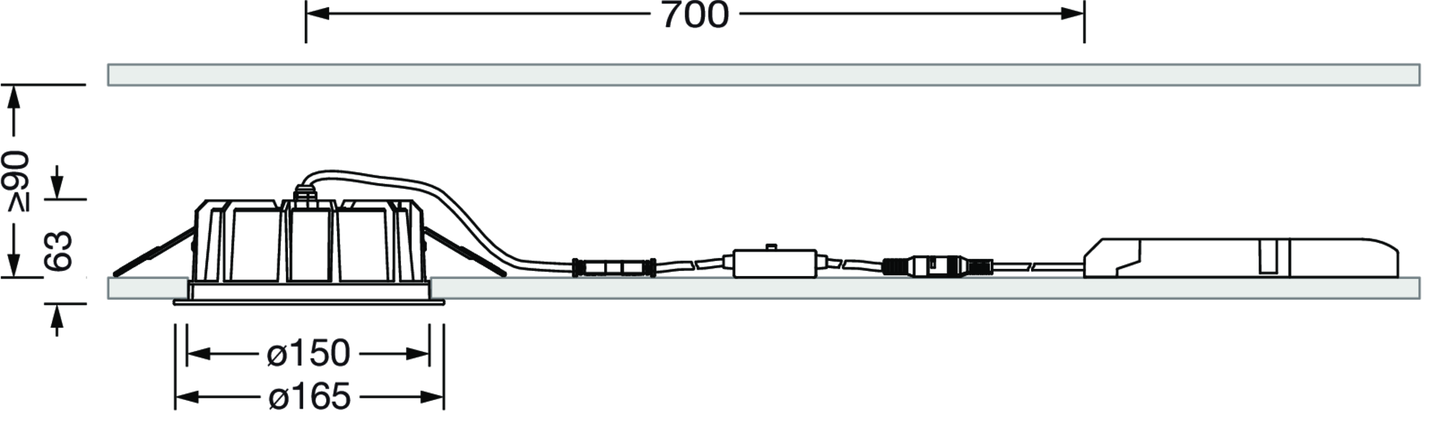 LED, Linse, PMMA, Abdeckscheibe, PC, opal, direkt breit strahlend, Einzelanordnung, Einbau, in der Decke, ø= 165mm