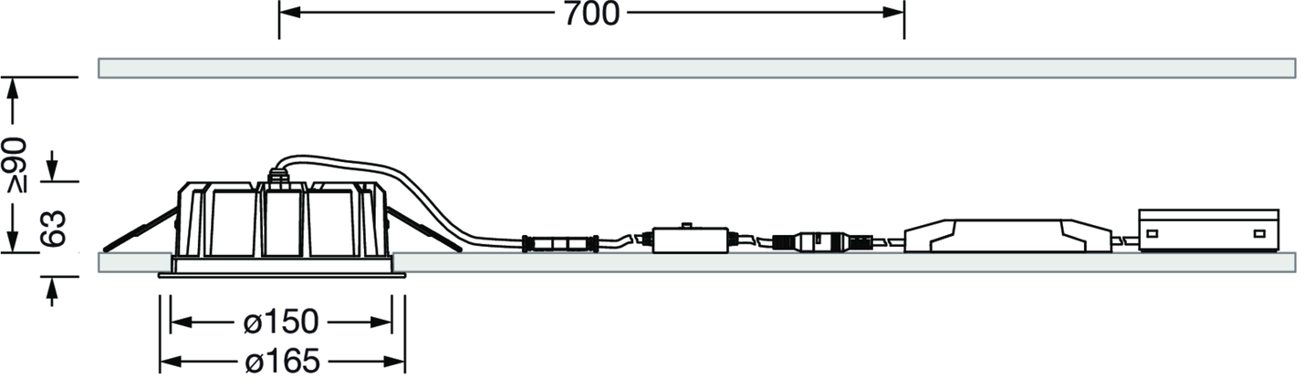 LED, Linse, PMMA, Reflektor, PC, direkt breit strahlend, Einzelanordnung, Einbau, in der Decke, ø= 165mm