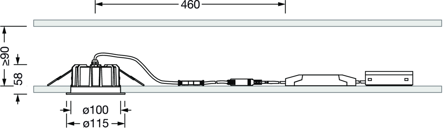 LED, Linse, PMMA, Reflektor, Aluminium, direkt breit strahlend, Einzelanordnung, Einbau, in der Decke, ø= 115mm