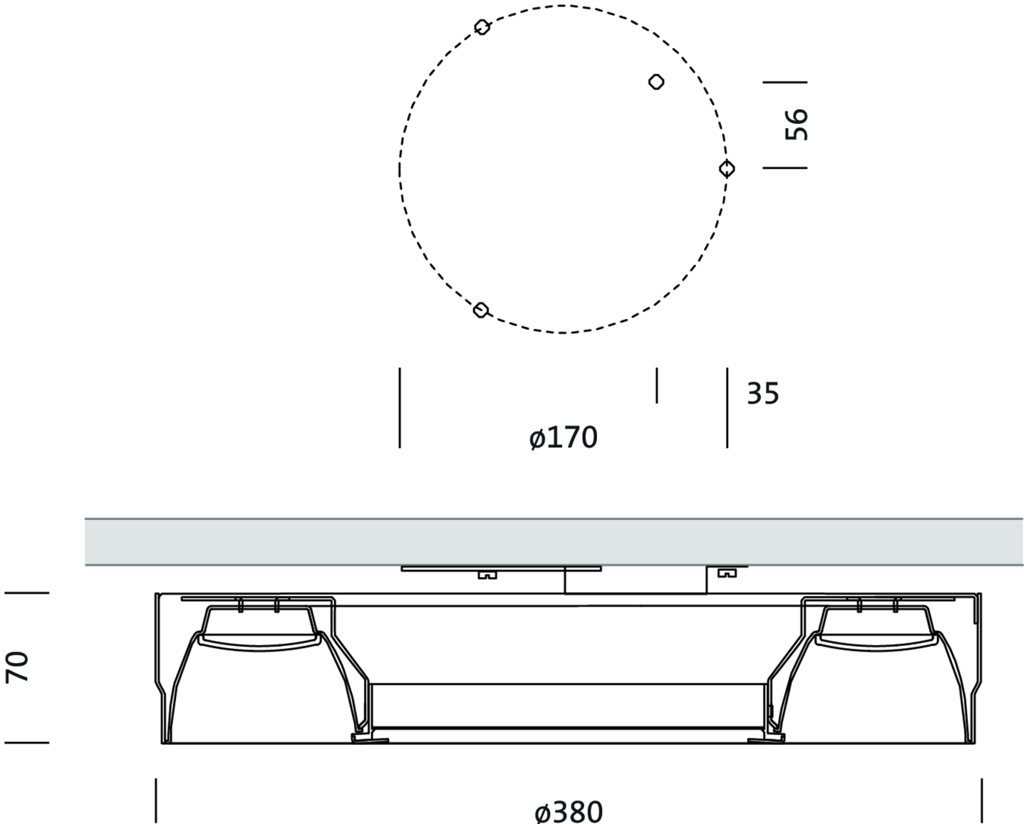 LED, Reflektor, hochglänzend, direkt symmetrisch breit strahlend, Anbau, an der Decke, ø= 380mm