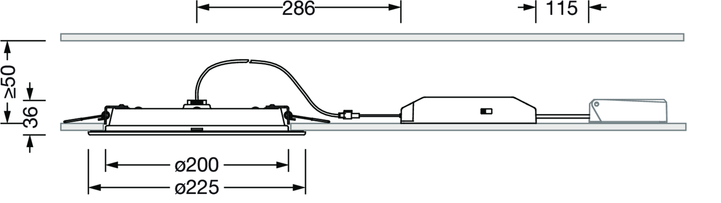 LED, EVG, Abdeckung, PC, direkt strahlend, Einzelanordnung, Einbau, in der Decke, ø= 225mm