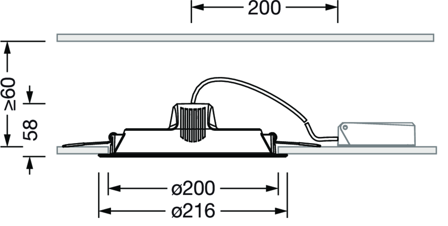 LED, direkt strahlend, Einzelanordnung, Einbau, in der Decke, ø= 216mm