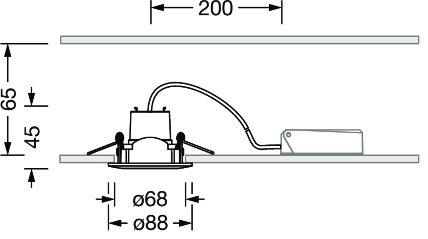 LED, direkt strahlend, Einzelanordnung, Einbau, in der Decke, ø= 88mm