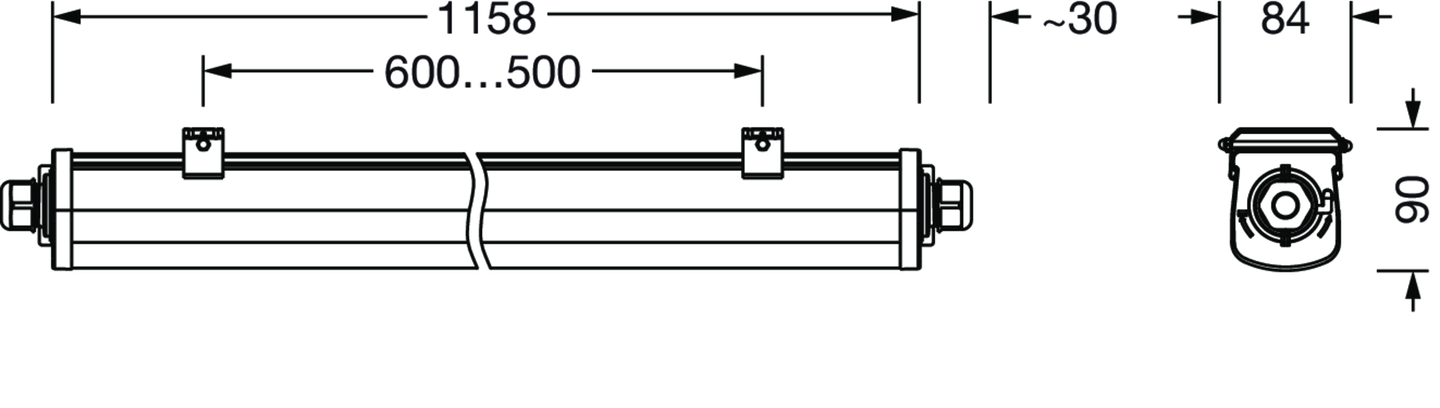 LED, EVG, mit Durch­ver­drahtung 3x 2,5mm² + 3x 1,5mm², Diffusor, Anbau, L= 1158mm