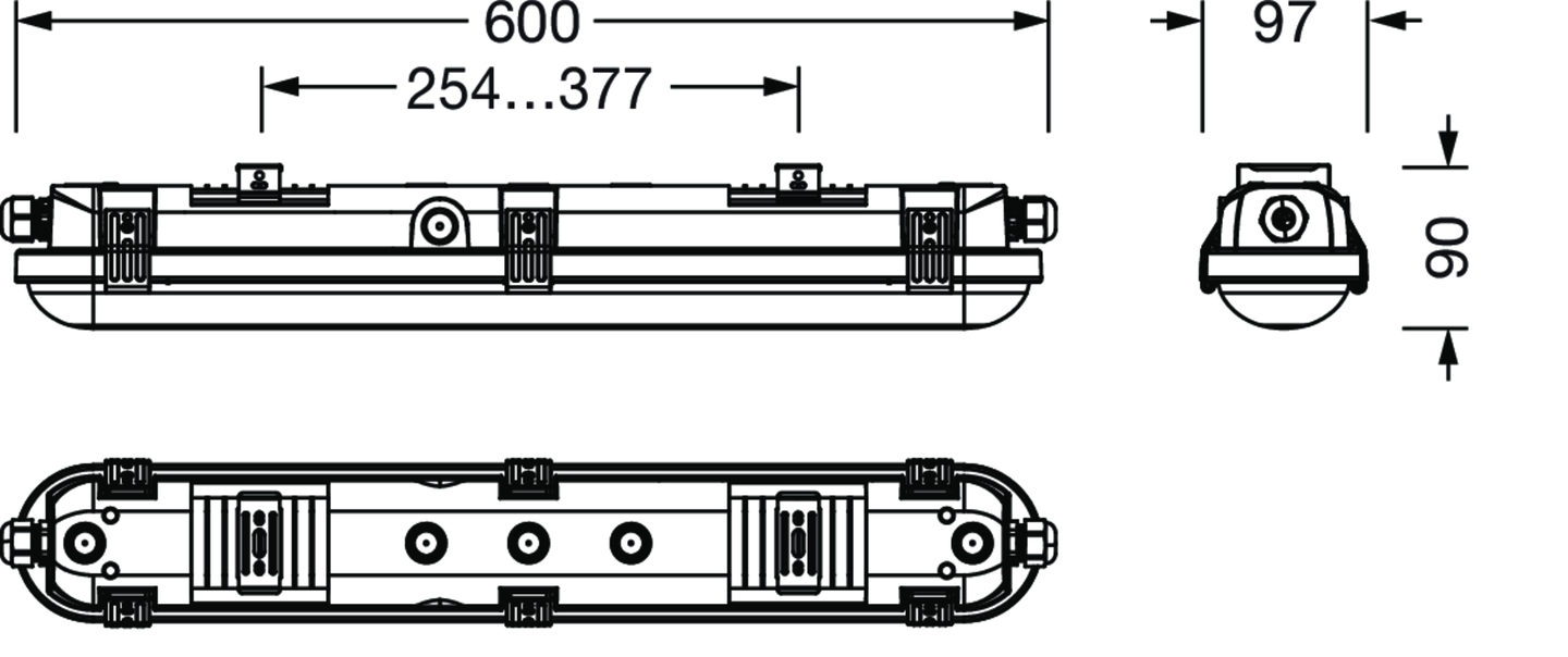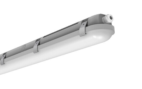 Monsun 31, Feucht­raum­leuchte, primäre lichttechn. Abdeckung: Diffusor, aus PC, satiniert, Lichtaustritt: direkt strahlend, primäre Licht­charakteristik: symmetrisch, Montageart: Anbau, LED, Bemessungs­lichtstrom: 2.510lm, Licht­ausbeute: 167lm/W, Lichtfarbe: 840, Farb­temperatur: 4000K, Vorschaltgerät: EIN/AUS Multilumen, mit Klemme, 3polig, max. 2,5mm², Netz­anschluss: 220..240V, AC, 50/60Hz, Bemessungs­leistung: 15W, Gehäuse, aus PC, weißaluminium matt (RAL 9006), inkl. Montagebügel, Länge: 600mm, Breite: 95mm, Höhe: 80mm, Abdeckwannen-Verschluss, aus Federstahl V2A, Schutzart (gesamt): IP66, Schutzklasse (gesamt): SK I (Schutzerdung), Prüfzeichen: CE, UKCA, Schutzzeichen: D, Schlag­festigkeit: IK08, zul. Betriebsumgebungstemperatur: -20..+40°C, entspricht den Anforderungen von IFS (International Featured Standards) für Sicherheit und Qualität in der Lebens­mittel­industrie, Kontaktieren Sie ihren Verkaufsberater, bevor Sie die Leuchten in Anwendungen mit unklarer chemischer Belastung, großen Temperaturschwankungen oder kondensatbildender Luftfeuchtigkeit einsetzen, Verpackungs­einheit: 1 Stück