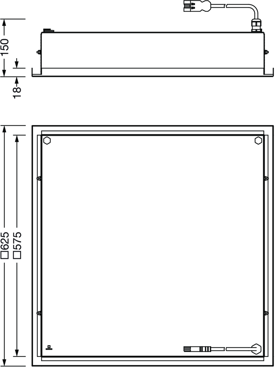 Mira 11, Reinraumleuchte, primäre Lichtlenkung mit Reflektor, primäre lichttechn. Abdeckung: Abdeckung, aus Einscheiben-Sicherheitsglas, Lichtaustritt: direkt strahlend, primäre Lichtcharakteristik: symmetrisch, Montageart: Einbau, LED, Bemessungslichtstrom: 4.610lm, Lichtausbeute: 125lm/W, Lichtfarbe: 840, Farbtemperatur: 4000K, Vorschaltgerät: EIN/AUS, mit Klemme, 3polig, max. 2,5mm², Netzanschluss: 230V, AC, 50/60Hz, Bemessungsleistung: 37W, Leuchtengehäuse, aus Stahlblech, lackiert, reinweiß (RAL 9010), mit verdeckten Magneten, Modul: M625, Länge: 623mm, Breite: 623mm, Höhe: 90mm, Schutzart (gesamt): IP65, Schutzklasse (gesamt): SK I (Schutzerdung), Prüfzeichen: CE, UKCA, zul. Betriebsumgebungstemperatur: -5..+40°C, Norm: EN 50419, Verpackungseinheit: 1 Stück