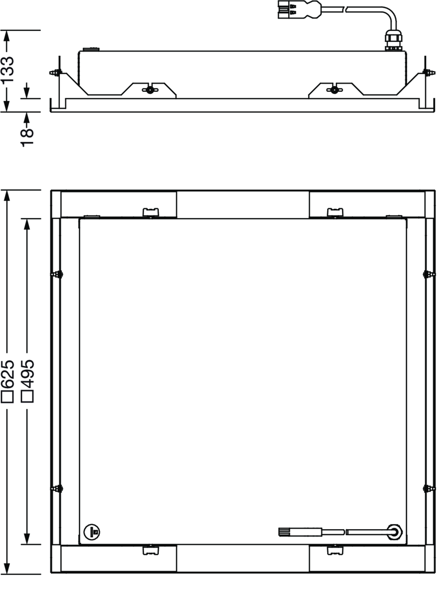 Mira 11 SL, Reinraumleuchte, primäre Lichtlenkung mit Reflektor, primäre lichttechn. Abdeckung: Abdeckung, aus PC, Lichtaustritt: direkt strahlend, primäre Licht­charakteristik: symmetrisch, Montageart: Einbau, LED, Bemessungs­lichtstrom: 4.430lm, Licht­ausbeute: 111lm/W, Lichtfarbe: 840, Farb­temperatur: 4000K, Vorschaltgerät: EIN/AUS, mit Klemme, 3polig, max. 2,5mm², Netz­anschluss: 230V, AC, 50/60Hz, Bemessungs­leistung: 40W, Leuchten­gehäuse, aus Stahlblech, lackiert, reinweiß (RAL 9010), mit Flügelmuttern, Modul: M625, Länge: 623mm, Breite: 623mm, Höhe: 91mm, Schutzart (gesamt): IP54, Schutzart (raumseitig): IP65, Schutzklasse (gesamt): SK I (Schutzerdung), Prüfzeichen: CE, UKCA, zul. Betriebsumgebungstemperatur: -5..+40°C, Norm: EN 50419, Verpackungs­einheit: 1 Stück