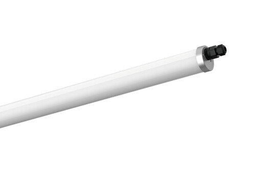 Monsun 31 Tube, Rohrleuchte, primäre lichttechn. Abdeckung: Diffusor, aus PMMA, Lichtaustritt: direkt strahlend, primäre Licht­charakteristik: symmetrisch, Montageart: abgehängte Montage, Anbau, LED, Bemessungs­lichtstrom: 6.500lm, Licht­ausbeute: 160lm/W, Lichtfarbe: 840, Farb­temperatur: 4000K, Vorschaltgerät: EIN/AUS, mit mit 1 Klemme, 3polig, max. 2,5mm², Durch­ver­drahtung: 3x 1,5mm², Netz­anschluss: 220..240V, AC, 50/60Hz, Bemessungs­leistung: 40W, Gehäuse, zylindrisch, aus PMMA, teiltransparent, mattweiß, mit Leuchten- und Deckenbefestigung, V4A, Befestigung mit Klammern aus Edelstahl, Länge: 1.560mm, Durchmesser: 75mm, Stirnwand, aus Edelstahl (V4A), Schutzart (gesamt): IP67/IP69K, Schutzklasse (gesamt): SK I (Schutzerdung), Prüfzeichen: CE, UKCA, Schlag­festigkeit: IK07, zul. Betriebsumgebungstemperatur: -20..+40°C, entspricht den Anforderungen von IFS (International Featured Standards) für Sicherheit und Qualität in der Lebens­mittel­industrie, Einsatz im ungeschützten Außenbereich bei horizontaler Montage möglich, Kontaktieren Sie ihren Verkaufsberater, bevor Sie die Leuchten in Anwendungen mit unklarer chemischer Belastung, großen Temperaturschwankungen oder kondensatbildender Luftfeuchtigkeit einsetzen, Verpackungs­einheit: 1 Stück