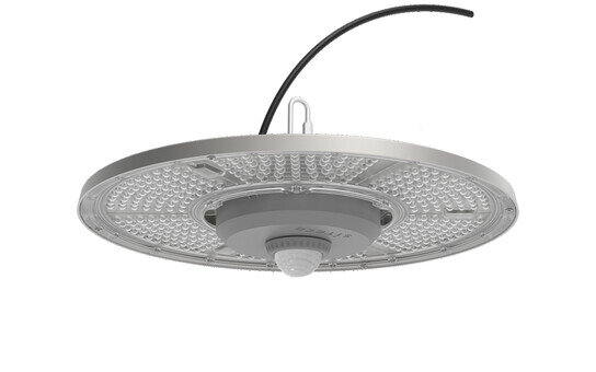 Highbay 31-L, Hallenleuchte, primäre Lichtlenkung mit Linse, aus PC, primäre lichttechn. Abdeckung: Abdeckscheibe, aus PC, klar, Lichtaustritt: direkt strahlend, primäre Licht­charakteristik: rotations-symmetrisch, Montageart: abgehängte Montage, Anbau, LED, Bemessungs­lichtstrom: 28.000lm, Licht­ausbeute: 150lm/W, Lichtfarbe: 840, Farb­temperatur: 4000K, Vorschaltgerät: EIN/AUS, mit Leitung, 3x 1,0mm², freie Aderenden, Netz­anschluss: 220..240V, AC, 50/60Hz, Leitungslänge: 1,5m, Bemessungs­leistung: 187W, Gehäuse, rotations-symmetrisch, aus Aluminium-Druckguss, pulver­beschichtet, graualuminium (RAL 9007), inkl. leuchtenseitigem Haken, inkl. Schraube, Durchmesser: 406mm, PIR-Sensor, Schutzart (gesamt): IP65, Schutzklasse (gesamt): SK I (Schutzerdung), Prüfzeichen: CE, ENEC, UKCA, Schutzzeichen: D, Schlag­festigkeit: IK08, zul. Betriebsumgebungstemperatur: -30..+45°C, entspricht den Anforderungen von IFS (International Featured Standards) für Sicherheit und Qualität in der Lebens­mittel­industrie, Verpackungs­einheit: 1 Stück