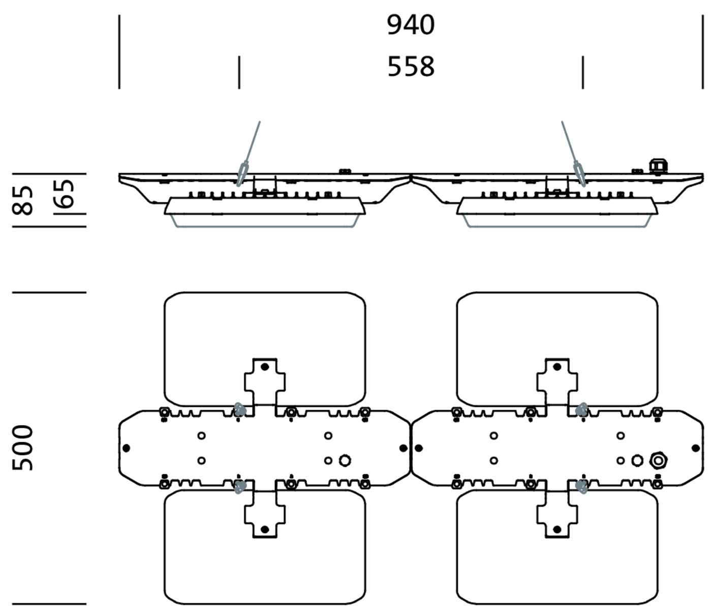 Highbay 11, Hallenleuchte, primäre Lichtlenkung mit Linse, aus PMMA, Lichtaustritt: direkt strahlend, primäre Lichtcharakteristik: symmetrisch, Montageart: Anbau, abgehängte Montage, für 2x 2x LED, Bemessungslichtstrom: 28.800lm, Lichtausbeute: 177lm/W, Lichtfarbe: 840, Farbtemperatur: 4000K, Vorschaltgerät: DALI (mit zwei DALI-Adressen), mit Klemme, 5polig, max. 2,5mm², Netzanschluss: 230..240V, AC, 50/60Hz, Bemessungsleistung: 162W, LED-Einheit, aus Aluminium-Druckguss, unbeschichtet, perlgestrahlt, silber, Länge: 940mm, Breite: 500mm, Höhe: 65mm, Gehäuse, aus Aluminium-Druckguss, unbehandelt, perlgestrahlt, silber, Schutzart (gesamt): IP65, Schutzklasse (gesamt): SK I (Schutzerdung), Prüfzeichen: CE, ENEC, VDE, UKCA, Schutzzeichen: D, Schlagfestigkeit: IK08 mit Glas- oder PC-Abdeckung, zul. Betriebsumgebungstemperatur: -35..+55°C, bei Deckenanbau Reduzierung der zulässigen maximalen Umgebungstemperatur um 5°C, entspricht den Anforderungen von IFS (International Featured Standards) für Sicherheit und Qualität in der Lebensmittelindustrie, Verpackungseinheit: 1 Stück
