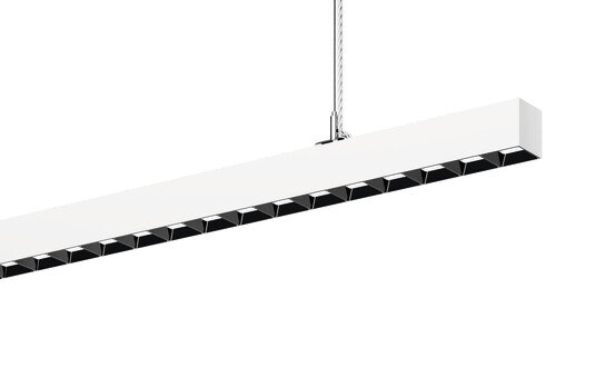 Silica 21, Office-Leuchte, primäre Lichtlenkung mit Darklight-Reflektor, aus PMMA, schwarz, BAP65 (L= 3000cd/m²), Lichtaustritt: direkt/indirekt strahlend, primäre Lichtcharakteristik: symmetrisch, Montageart: abgehängte Montage, LED, Bemessungslichtstrom: 7.290lm, Lichtausbeute: 156lm/W, Lichtfarbe: 830, Farbtemperatur: 3000K, Vorschaltgerät: DALI 2, mit Klemme, 3+2polig, max. 2,5mm², Netzanschluss: 220..240V, AC, 50/60Hz, Bemessungsleistung: 46,8W, Leuchtengehäuse, aus Aluminium, verkehrsweiß (RAL 9016), Länge: 1.204mm, Breite: 53mm, Höhe: 53mm, Schutzart (gesamt): IP20, Schutzklasse (gesamt): SK I (Schutzerdung), Prüfzeichen: CE, zul. Betriebsumgebungstemperatur: 0..+35°C, Norm: EN 50419, Verpackungseinheit: 1 Stück