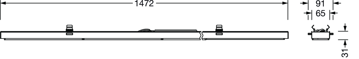Trunking Flex 31, Leuchteneinsatz, aus Alu-Strangpreßprofil, lackiert, verkehrsweiß (RAL 9016), Länge: 1.472mm, Breite: 91mm, Höhe: 53mm, LED Bemessungslichtstrom: 8.000lm, Lichtfarbe: 840, SDCM (Standard Deviation of Colour Matching)MacAdam ≤ 3 SDCM (initial), Vorschaltgerät: EIN/AUS Multilumen, mit Systemverbindung: Buchse, Netzanschluss: 220..240V, AC, 50/60Hz, Bemessungsleistung: 50W, Lichtstrom an der Leuchte einstellbar in vier Stufen (4130/5610/6850/8000lm), Anschlussleistung je nach Lichtstromeinstellung (25/34/42/50W), primäre Lichtlenkung mit Linse, aus Kunststoff, primäre lichttechn. Abdeckung: Abdeckung, aus PMMA, Lichtaustritt: direkt strahlend, Schutzart (gesamt): IP20, Schutzklasse (gesamt): SK I (Schutzerdung), Prüfzeichen: CE, UKCA, Schlagfestigkeit: IK02, zul. Umgebungstemperatur für Innenräume: -20..+40°C, Verpackungseinheit: 1 Stück