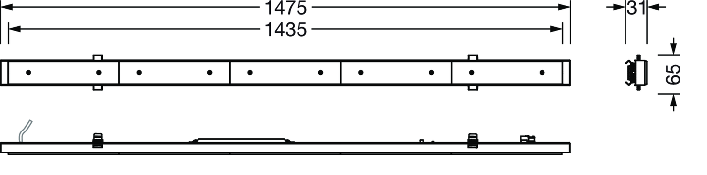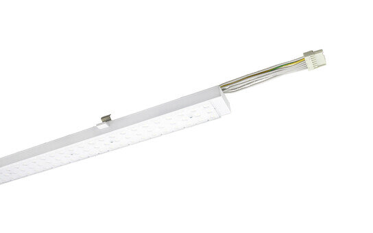 Trunking Flex 31, Leuchteneinsatz, aus Aluminium, lackiert, verkehrsweiß (RAL 9016), Länge: 1.475mm, Breite: 91mm, Höhe: 53mm, LED Bemessungslichtstrom: 9.100lm, Lichtfarbe: 840, SDCM (Standard Deviation of Colour Matching)MacAdam ≤ 3 SDCM (initial), Vorschaltgerät: EIN/AUS Multilumen, mit Systemverbindung: Buchse, Durchverdrahtung: 7x 2,5mm², Netzanschluss: 220..240V, AC, 50/60Hz, Bemessungsleistung: 51W, Lichtstrom an der Leuchte einstellbar in 6 Stufen (3890/4820/5740/6680/7580/9100lm), Anschlussleistung je nach Lichtstromeinstellung (22/27/32/38/43/51W), primäre Lichtlenkung mit Linse, aus Kunststoff, primäre lichttechn. Abdeckung: Abdeckung, aus PMMA, Lichtaustritt: direkt strahlend, Schutzart (gesamt): IP20, Schutzklasse (gesamt): SK I (Schutzerdung), Prüfzeichen: CE, UKCA, Schlagfestigkeit: IK03, zul. Umgebungstemperatur für Innenräume: -25..+45°C, bei Deckenanbau Reduzierung der zulässigen maximalen Umgebungstemperatur um 5°C, Die Lichtquelle sowie das Betriebsgerät entsprechen den Anforderungen der Ökodesign-Verordnung (EU) 2019/2020, diese sind gemäß dieser Verordnung austauschbar, Verpackungseinheit: 1 Stück