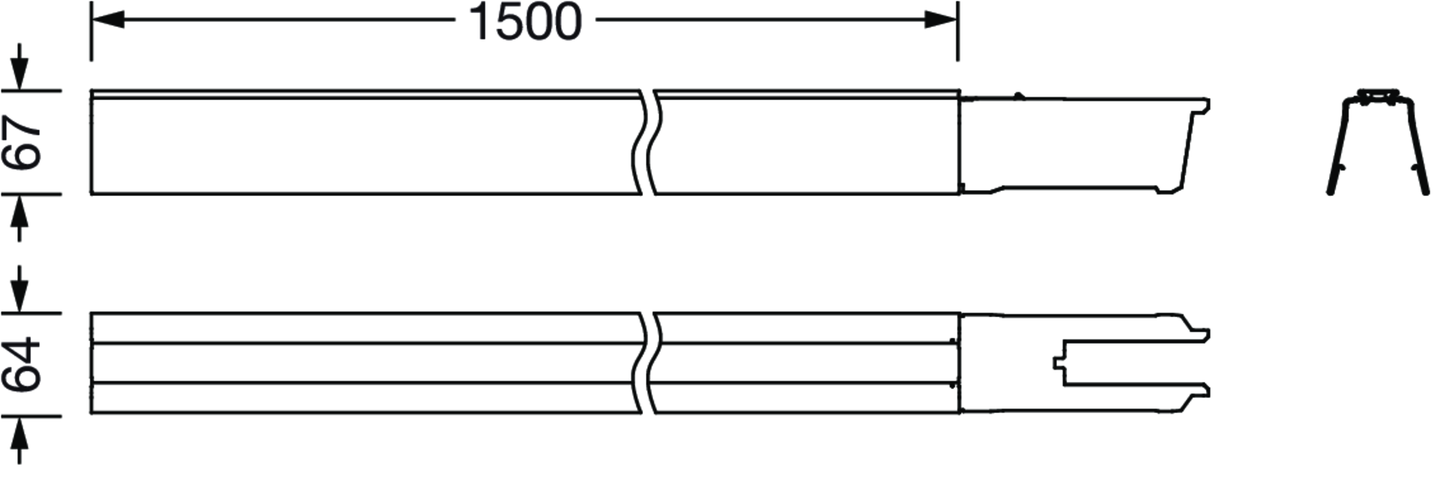 Licross, Tragschiene, aus Stahlblech, verzinkt, bandlackiert, weiß, Länge: 1.500 mm, Breite: 64 mm, Höhe: 67mm, Durchverdrahtung: 5x 2,5mm², Schutzart (gesamt): maximal IP64, abhängig von den verwendeten Einsätzen und Zubehören, Schutzklasse (gesamt): SK I (Schutzerdung), Prüfzeichen: CE, UKCA, LABS-Konformität geprüft gemäß VDMA 24364:2018-05, Verpackungseinheit: 1 Stück