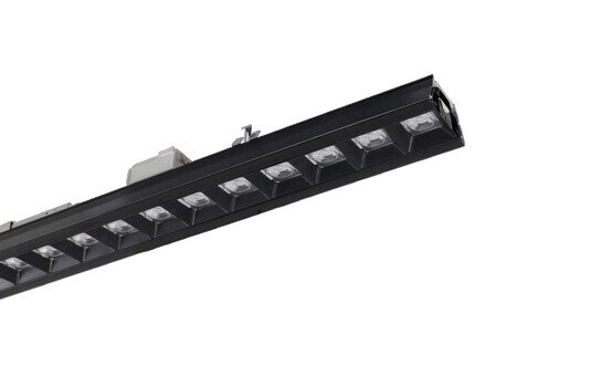 Licross 21 Silica, Leuchteneinsatz, aus Stahlblech, verzinkt, schwarz, Länge: 1.500mm, Breite: 82mm, Höhe: 86mm, LED Bemessungslichtstrom: 6.340lm, Lichtfarbe: 840, SDCM (Standard Deviation of Colour Matching)MacAdam ≤ 3 SDCM (initial), Vorschaltgerät: DALI 2, mit Stecker, 5polig, mit Phasenwahl, Netzanschluss: 220..240V, AC, 50/60Hz, Bemessungsleistung: 39W, interne Verdrahtung halogenfrei, primäre Lichtlenkung mit Linse, aus PMMA, primäre Entblendung mit Darklight-Reflektor, aus PC, BAP65 (L= 1000cd/m²), Lichtaustritt: direkt strahlend, primäre Lichtcharakteristik: symmetrisch, Schutzart (gesamt): IP40, Schutzklasse (gesamt): SK I (Schutzerdung), Prüfzeichen: CE, UKCA, Schutzzeichen: D bei Verwendung in einer Umgebung ohne relevante Staubbelastung, Schlagfestigkeit: IK03, zul. Umgebungstemperatur für Innenräume: -25..+45°C, entspricht den Anforderungen von IFS (International Featured Standards) für Sicherheit und Qualität in der Lebensmittelindustrie, bei Deckenanbau Reduzierung der zulässigen maximalen Umgebungstemperatur um 5°C, LABS-Konformität geprüft gemäß VDMA 24364:2018-05, Verpackungseinheit: 1 Stück
