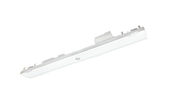 Licross, Leuchteneinsatz, aus Stahlblech, bandlackiert, weiß, Länge: 500mm, Breite: 59mm, Höhe: 60mm, Montagehöhe: 7..17m, Notlicht-Element,LED Bemessungs­lichtstrom: 310lm, Lichtfarbe: 740, Vorschaltgerät: CEAG, mit Stecker, 6polig, mit Phasenwahl, Netz­anschluss: 220..240V, AC/DC, 0/50..60Hz, Bemessungs­leistung: 3,9W, interne Verdrahtung halogenfrei, für Tragschiene, 9..14adrig, für Notlicht-Funktion, Versorgungs- Überwachungsmodul CEAG, mit Addressschalter, Auswahlmöglichkeit zwischen zwei Notlicht-Linien durch werkzeugloses Verschieben eines Kontaktstiftes vor dem Einsetzen in die Tragschiene, primäre Lichtlenkung mit Linse, aus PMMA, primäre lichttechn. Abdeckung: Abdeckung, aus PMMA, Lichtaustritt: direkt strahlend, primäre Licht­charakteristik: symmetrisch, für Fläche, kompatibel mit allen CEAG STAR-Technologie Systemen (ZB-S, DG-S (DualGuard-S), LP-STAR, AT-S+), Schutzart (gesamt): IP40, Schutzklasse (gesamt): SK I (Schutzerdung), Prüfzeichen: CE, UKCA, Schutzzeichen: D bei Verwendung in einer Umgebung ohne relevante Staubbelastung, Schlag­festigkeit: IK06, zul. Umgebungs­temperatur für Innenräume: -20..+40°C, Verpackungs­einheit: 1 Stück