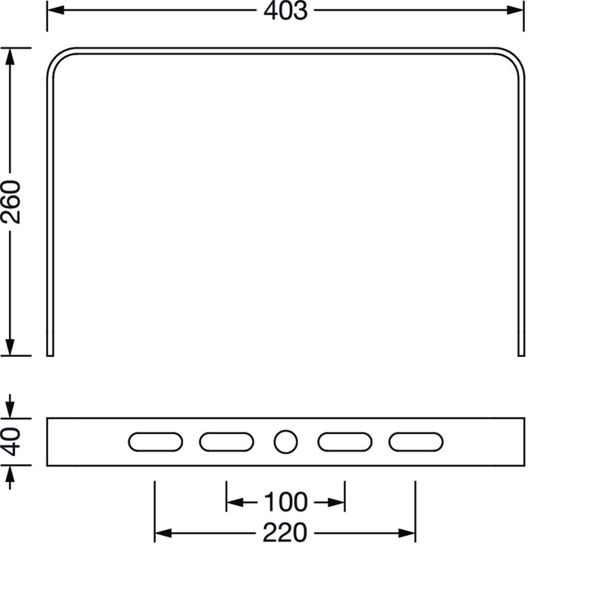 Highbay 31 L, Tragbügel, Montageart: Anbau, Tragbügel, aus Stahl, graualuminium (RAL 9007), Breite: 403mm, Höhe: 260mm, Verpackungseinheit: 1 Stück