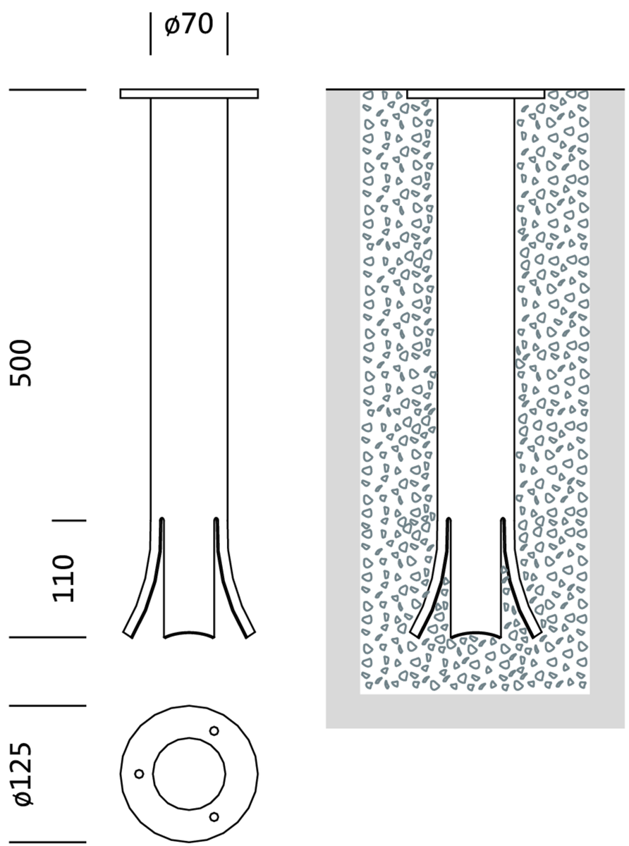 Zubehör Gehäuse, für CL POLLER 120, CL POLLER 90, Erdstück, zylindrisch, aus Stahl, verzinkt, Länge: 500 mm, Verpackungseinheit: 1 Stück