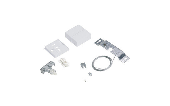 Comfit® M, Doppel-Seilabhängung, mit mit 5 Klemmen, 1polig, max. 2,5mm², Deckenbefestigungselement, aus Stahl, verzinkt, Baldachin, eckig, aus Kunststoff, Seil, aus Stahl, verzinkt, leuchtenseitiger Tragbügel, aus Stahl, verzinkt, Verpackungseinheit: 1 Stück