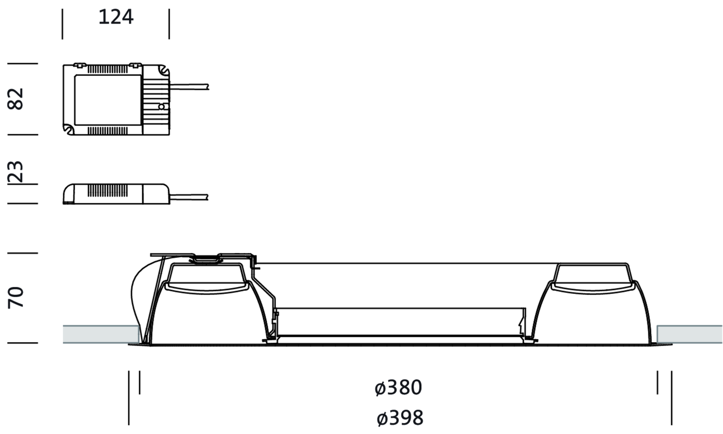 LED, EVG-Multilumen, Reflektor, Reinstaluminium (Al 99,98%), perforiert, hochglänzend, direkt symmetrisch breit strahlend, Einbau, in der Decke, ø= 398mm