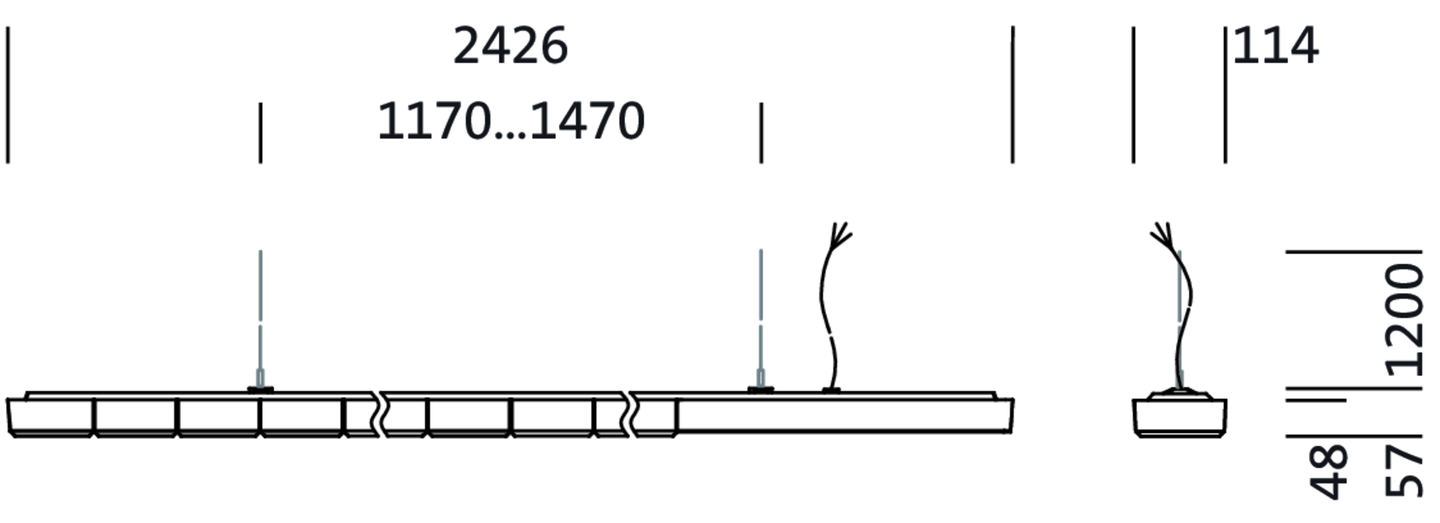 Office-Leuchte, verkehrsweiß (RAL 9016), DALI, 12070lm, 840, 2426x114mm, Anschluss: Klemme