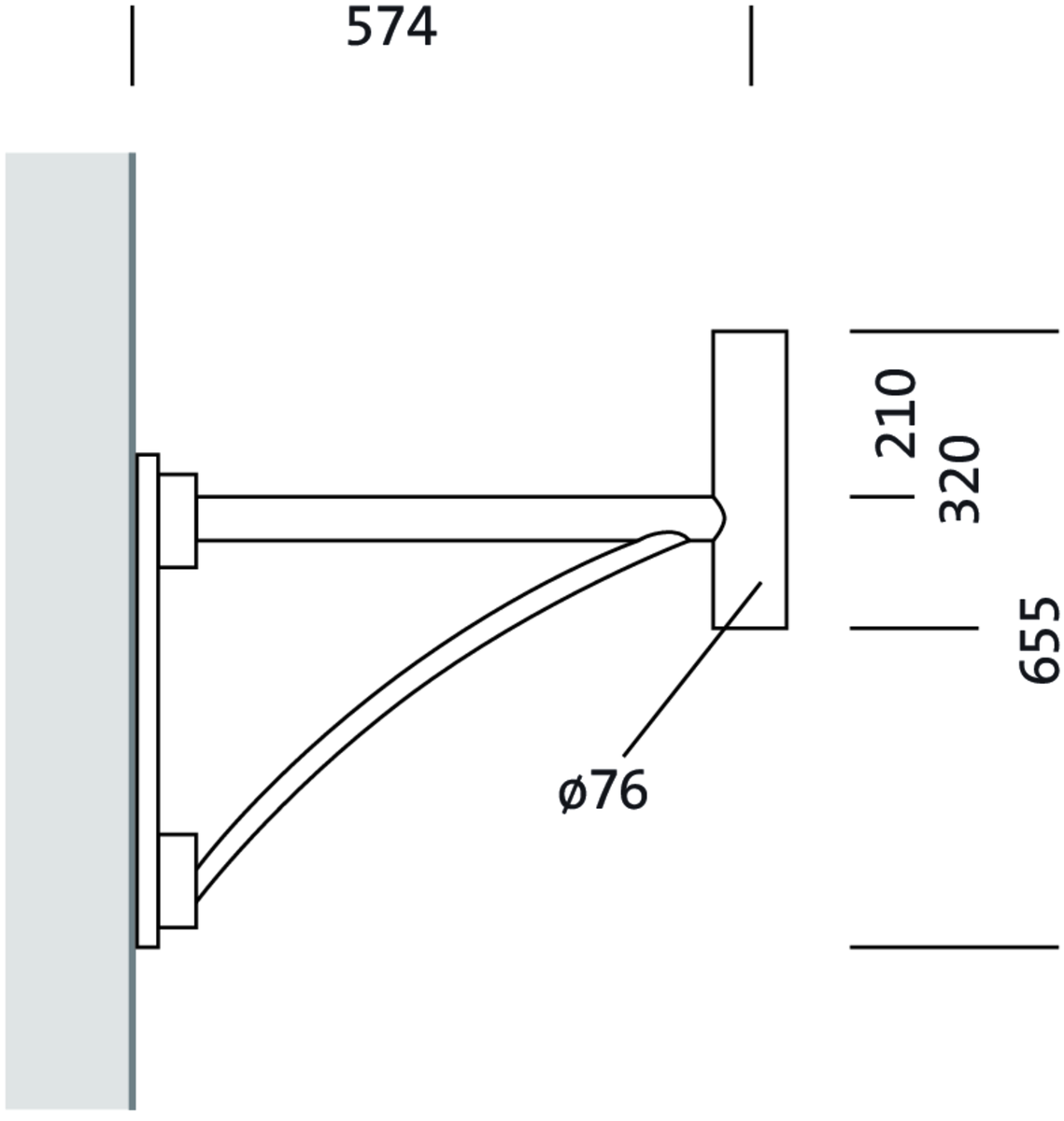 Schwinge, Wandausleger, Designausleger, aus Stahl, verzinkt und lackiert, Siteco® eisenglimmer (DB 702S), 1armig, Breite: 100mm, Höhe: 500mm, Auslegermaß: 600mm, Verpackungseinheit: 1 Stück