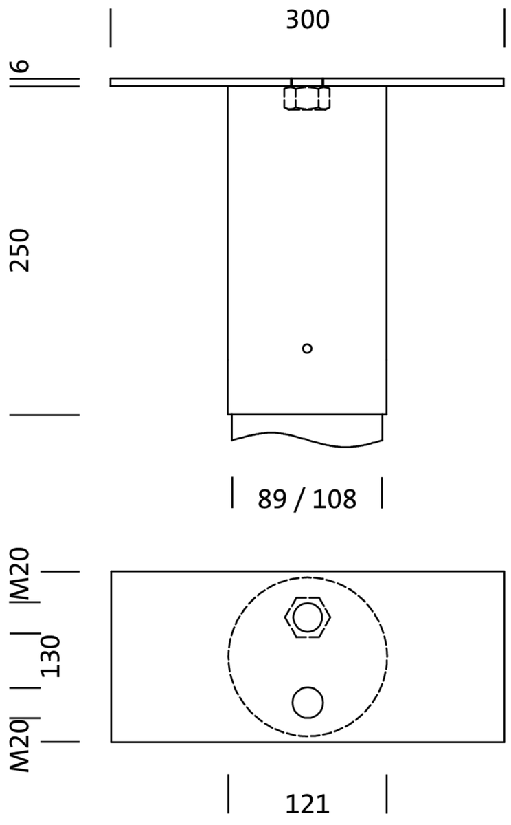Floodlight FL 11, Floodlight FL 21 midi Baugruppe Montage; Baugruppe Montage mit 1x Traverse für 1 Fluter aus Stahl, verzinkt, Typ 1: Aufsatz, Länge: 300mm / Breite: 130mm / Höhe: 250mm; Zopfmaß: 108mm, industry, public (AL), stadion, sports, traffic, Verpackungseinheit: 1 Stück