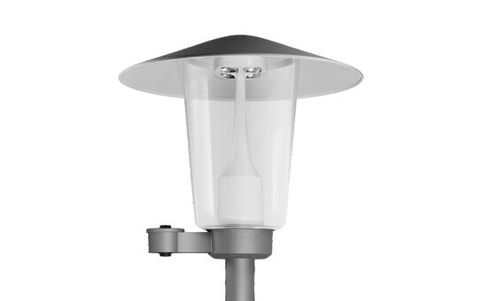 Pilzleuchte iQ, Mastleuchte, Modul 540 iQ-SR, primäre Lichtlenkung mit 3-Zonen Facetten-Reflektor, aus Kunststoff, Silber beschichtet, hochglänzend, strukturiert, primäre lichttechn. Abdeckung: Abdeckung, aus PMMA, klar, Lichtverteilung: S120002, Lichtaustritt: direkt strahlend, primäre Lichtcharakteristik: asymmetrisch, Montageart: Aufsatz, Leuchtmittel: LED, Bemessungswerte: 1.550lm | 10,7W | 144,9lm/W (Beginn Lebensdauer); Ende Lebensdauer: 1.550lm | 11,1W; bei 50% Lichtstrom: 775lm | 5,6W | 138,4lm/W, Farbtemperatur: 3000K, Farbwiedergabe: CRI > 70, Lichtfarbe: 730, Lichteinstellung 1 (weitere Lichteinstellungen möglich): 100% | 1.550lm | 10,7W | 144,9lm/W | 3.000K (Beginn Lebensdauer); Ende Lebensdauer: 11,1W, Vorschaltgerät: iQ-Street Remote, D4i, Steuerung: optimierte Konstantlichtstromsteuerung (CLO 2.0), Desk-Remote (drahtloses, spannungsfreies Auslesen und Einstellen der iQ-Features in der Werkstatt via anwendungsoptimierter NFC-Funktion/RFID-Funktion), Light-Fading, Smart-Wire, Night-Set, Lumen-Switch, Temp-Guard, Auto-Match, Street-Remote, Voreinstellung: Dimmkennlinie logarithmisch, Netzanschluss: 220..240V, AC, 50/60Hz, Stoßspannungsfestigkeit: Stoßspannungsfestigkeit: 10kV (Common Mode); 6kV (Differential Mode), Elektrischer Anschluss: Klemme, 6polig, max. 2,5mm², eindrähtig, feindrähtig, Anschlussleitung: vormontiert, Leitungslänge: 5,5m, Leitungsausprägung: H07RN-F, 5G 1,5mm², Belegung: L/N/E/LST, Leuchtengehäuse-Oberteil, aus Polyester, glasfaserverstärkt, lackiert, SITECO eisenglimmer (DB 702S), Durchmesser: 650mm, Höhe: 586mm, für Zopfmaß: d x l = 76 x 70mm (Aufsatz) | mit Reduzierstück (optionales Zubehör) 60 x 70mm, Mastaufsatzelement, aus Aluminium-Druckguss, lackiert, SITECO eisenglimmer (DB 702S), Modul 540 iQ-SR, verkehrsweiß (RAL 9016), Smart Interface oben: Zhaga, Ausstattung: Standard, Schutzart (gesamt): IP65, Schutzklasse (gesamt): SK II (Schutzisoliert), Prüfzeichen: CE, ENEC, VDE, Verpackungseinheit: 1 Stück