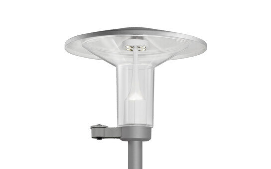 Laterne iQ, Mastleuchte, Modul 540 iQ-SR, primäre Lichtlenkung mit 3-Zonen Facetten-Reflektor, aus Kunststoff, Silber beschichtet, hochglänzend, strukturiert, primäre lichttechn. Abdeckung: Abdeckung, aus PMMA, klar, Lichtverteilung: S120010, Abstrahlwinkel primär: breit strahlend, Lichtaustritt: direkt strahlend, primäre Lichtcharakteristik: asymmetrisch, Montageart: Aufsatz, Leuchtmittel: LED, Bemessungswerte: 1.530lm | 10,7W | 143lm/W (Beginn Lebensdauer); Ende Lebensdauer: 1.530lm | 11,1W; bei 50% Lichtstrom: 765lm | 5,6W | 136,6lm/W, Farbtemperatur: 3000K, Farbwiedergabe: CRI > 70, Lichtfarbe: 730, Lichteinstellung 1 (weitere Lichteinstellungen möglich): 100% | 1.530lm | 10,7W | 143lm/W | 3.000K (Beginn Lebensdauer); Ende Lebensdauer: 11,1W, Vorschaltgerät: iQ-Street Remote, D4i, Steuerung: optimierte Konstantlichtstromsteuerung (CLO 2.0), Desk-Remote (drahtloses, spannungsfreies Auslesen und Einstellen der iQ-Features in der Werkstatt via anwendungsoptimierter NFC-Funktion/RFID-Funktion), Light-Fading, Smart-Wire, Night-Set, Lumen-Switch, Temp-Guard, Auto-Match, Street-Remote, Voreinstellung: Dimmkennlinie logarithmisch, Netzanschluss: 220..240V, AC, 50/60Hz, Stoßspannungsfestigkeit: Stoßspannungsfestigkeit: 10kV (Common Mode); 6kV (Differential Mode), Elektrischer Anschluss: Klemme, 6polig, max. 2,5mm², eindrähtig, feindrähtig, Anschlussleitung: vormontiert, Leitungslänge: 5,5m, Leitungsausprägung: H07RN-F, 5G 1,5mm², Belegung: L/N/E/LST, Leuchtengehäuse-Oberteil, aus Polyester, glasfaserverstärkt, lackiert, SITECO eisenglimmer (DB 702S), Durchmesser: 750mm, Höhe: 583mm, für Zopfmaß: d x l = 76 x 70mm (Aufsatz) | mit Reduzierstück (optionales Zubehör) 60 x 70mm, Mastaufsatzelement, aus Aluminium-Druckguss, lackiert, SITECO eisenglimmer (DB 702S), Modul 540 iQ-SR, verkehrsweiß (RAL 9016), Smart Interface oben: Zhaga, Ausstattung: Standard, Schutzart (gesamt): IP65, Schutzklasse (gesamt): SK II (Schutzisoliert), Prüfzeichen: CE, ENEC, VDE, Verpackungseinheit: 1 Stück