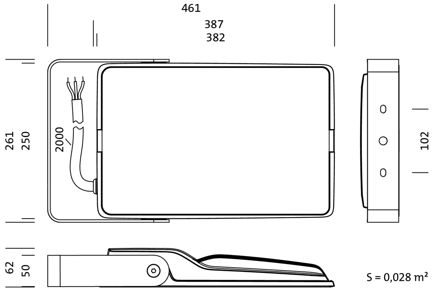 SiCompact 31 mini, Fluter, primäre Lichtlenkung mit Linse, aus Kunststoff, aus Einscheiben-Sicherheitsglas, klar, Lichtverteilung: PL32, Lichtaustritt: direkt strahlend, primäre Lichtcharakteristik: asymmetrisch, Montageart: Anbau, LED, High Power LED, Bemessungslichtstrom: 8.000lm, Lichtausbeute: 170lm/W, Lichtfarbe: 740, Farbtemperatur: 4000K, Vorschaltgerät: EIN/AUS, mit Leitung, 3x 1,5mm², Netzanschluss: 220..240V, AC, 50/60Hz, Anschlussleitung vormontiert, Leitungslänge: 2m, Bemessungsleistung: 47W, aus Aluminium-Druckguss, glänzend, weißaluminium (RAL 9006), Länge: 461mm, Breite: 261mm, Höhe: 62mm, Bügel, aus Stahlblech, lackiert, weißaluminium (RAL 9006), EIN/AUS, Schutzart (gesamt): IP66, Schutzklasse (gesamt): SK I (Schutzerdung), Prüfzeichen: CE, ENEC, Schlagfestigkeit: IK08, zul. Betriebsumgebungstemperatur: -40..+45°C, Verpackungseinheit: 1 Stück