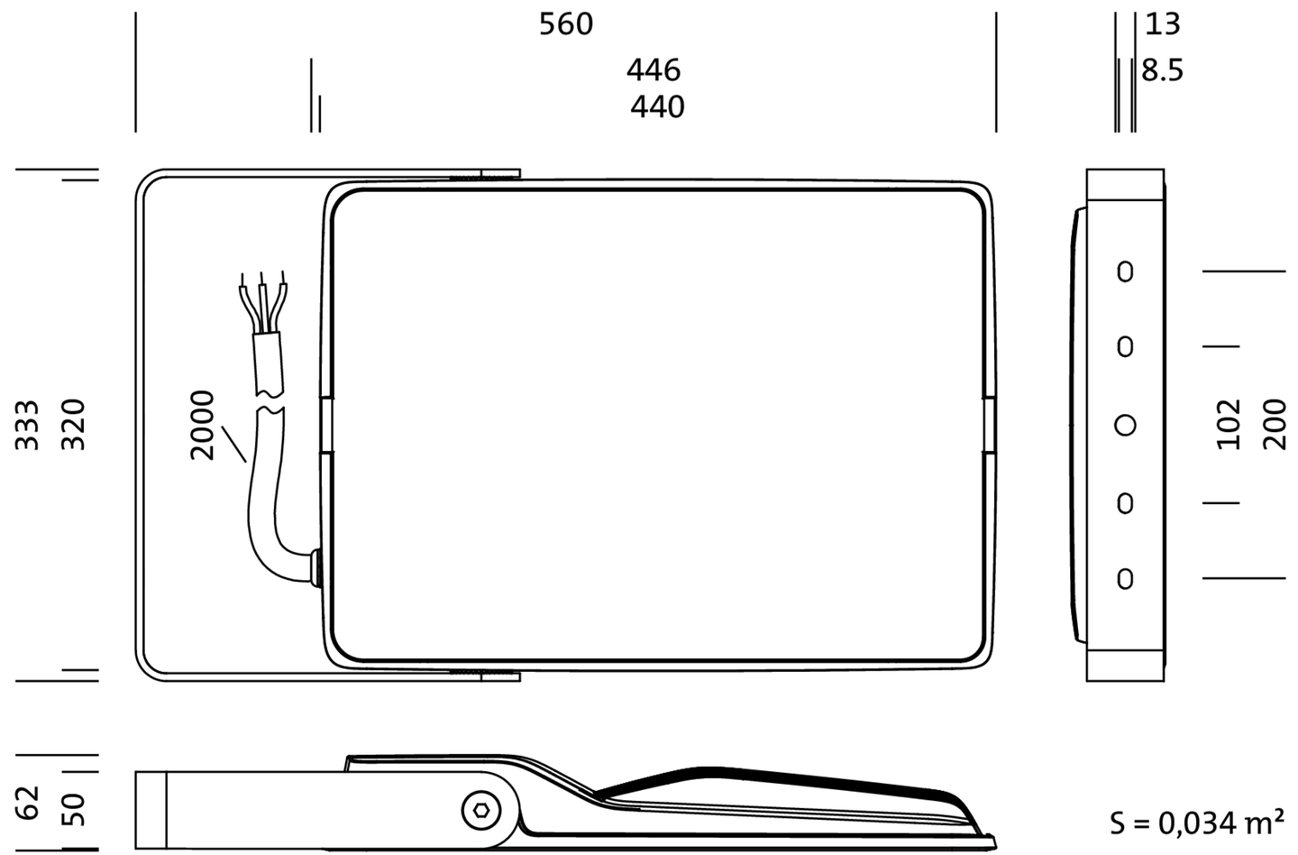 SiCompact 31 midi, Fluter, primäre Lichtlenkung mit Linse, aus Kunststoff, aus Einscheiben-Sicherheitsglas, klar, Lichtverteilung: PL32, Lichtaustritt: direkt strahlend, primäre Lichtcharakteristik: asymmetrisch, Montageart: Anbau, LED, High Power LED, Bemessungslichtstrom: 37.000lm, Lichtausbeute: 148lm/W, Lichtfarbe: 730, Farbtemperatur: 3000K, Vorschaltgerät: EIN/AUS, mit Leitung, 3x 1,5mm², Netzanschluss: 220..240V, AC, 50/60Hz, Anschlussleitung vormontiert, Leitungslänge: 2m, Bemessungsleistung: 250W, aus Aluminium-Druckguss, glänzend, weißaluminium (RAL 9006), Länge: 560mm, Breite: 330mm, Höhe: 62mm, Bügel, aus Stahlblech, lackiert, weißaluminium (RAL 9006), EIN/AUS, Schutzart (gesamt): IP66, Schutzklasse (gesamt): SK I (Schutzerdung), Prüfzeichen: CE, ENEC, Schlagfestigkeit: IK08, zul. Betriebsumgebungstemperatur: -40..+45°C, Verpackungseinheit: 1 Stück