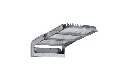 Floodlight FL 11 maxi pro Fluter; Lichtlenkung mit Linse aus PMMA; Abdeckscheibe aus Einscheiben-Sicherheitsglas, klar; Licht­verteilung: A330001, asymmetrisch direkt strahlend, Bemessungswerte: 248.920lm | 1.931,5W | 128,9lm/W, Farb­temperatur: 4000K, Farb­wiedergabe: CRI > 70, Lichtfarbe: 740, Lichteinstellung 1 (weitere Lichteinstellungen möglich): 100% | 248.920lm | 1.931,5W | 128,9lm/W | 4.000K Voreinstellung: Dimmkennlinie linear; Helligkeitssteuerung: DALI 2; Netz­anschluss: 220..240V/380..400V AC, 50/60Hz, Stoßspannungsfestigkeit: Line to Ground: 10kV, Elektrischer Anschluss: Klemme, 5polig, max. 2,5mm², eindrähtig, feindrähtig, EVG einzeln tauschbar, LED-Einheit ohne ESD-Umgebung tauschbar, staubdichte LED-Einheit, LED-Einheit austauschbar, LED-Einheit ohne ESD-Umgebung tauschbar am Mast, Dimmbereich 10..100%; Fluter mit 3x LED-Einheit aus Aluminium-Druckguss, natur; Länge: 1.003mm / Breite: 651mm / Höhe: 338mm; Tragbügel, aus Aluminium-Druckguss, unbehandelt, natur, Ausstattung: Power, Schutzart (gesamt): IP66; Schutzklasse (gesamt): SK I (Schutzerdung); Prüfzeichen: CE, ENEC, VDE; Ballwurfsicherheit: ballwurfsicher, nur für Aussenanlagen in den ausgewiesenen Einsatzorten, zul. Betriebsumgebungstemperatur: -40..+55°C, zul. Lagertemperatur: -40..+85°CVerpackungs­einheit: 1 Stück