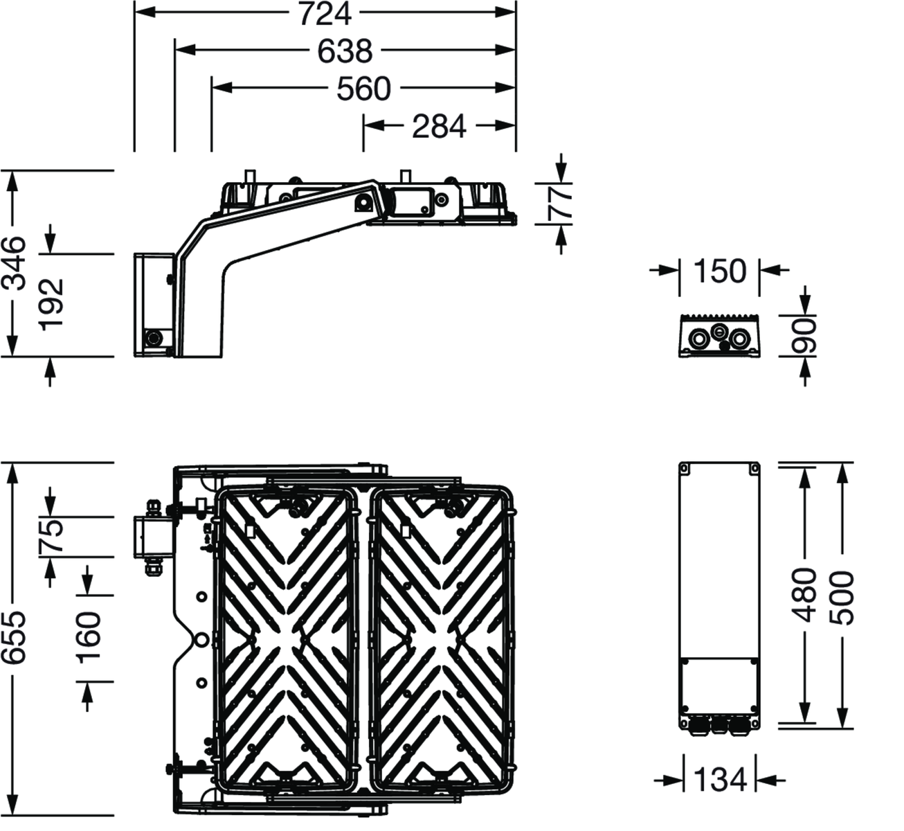 Floodlight FL 11 maxi Remote Fluter; Lichtlenkung mit Linse aus PMMA; Abdeckscheibe aus Einscheiben-Sicherheitsglas, klar; Lichtverteilung: A640001, asymmetrisch direkt strahlend, Bemessungswerte: 170.220lm | 1.272,3W | 133,8lm/W, Farbtemperatur: 4000K, Farbwiedergabe: CRI > 70, Lichtfarbe: 740, Lichteinstellung 1 (weitere Lichteinstellungen möglich): 100% | 170.220lm | 1.272,3W | 133,8lm/W | 4.000K Voreinstellung: Dimmkennlinie linear; Helligkeitssteuerung: DALI 2; Netzanschluss: 220..240V/380..400V AC, 50/60Hz, Stoßspannungsfestigkeit: Line to Ground: 10kV, Elektrischer Anschluss: Klemme, 5polig, max. 2,5mm², eindrähtig, feindrähtig, EVG einzeln tauschbar, LED-Einheit ohne ESD-Umgebung tauschbar, staubdichte LED-Einheit, LED-Einheit austauschbar, LED-Einheit ohne ESD-Umgebung tauschbar am Mast, Dimmbereich 10..100%; Fluter mit 2x LED-Einheit aus Aluminium-Druckguss, natur; Länge: 713mm / Breite: 651mm / Höhe: 338mm; Tragbügel, aus Aluminium-Druckguss, unbehandelt, natur, Ausstattung: Power, Schutzart (gesamt): IP66; Schutzklasse (gesamt): SK I (Schutzerdung); Prüfzeichen: CE, ENEC, VDE; Ballwurfsicherheit: ballwurfsicher, nur für Aussenanlagen in den ausgewiesenen Einsatzorten, zul. Betriebsumgebungstemperatur: -40..+55°C, zul. Lagertemperatur: -40..+85°CVerpackungseinheit: 1 Stück