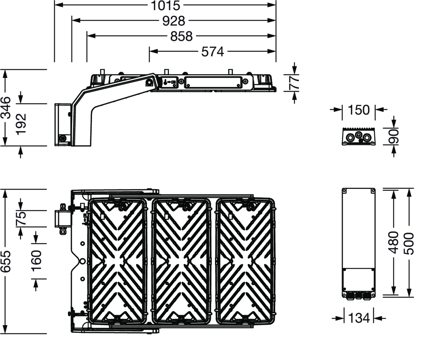 Floodlight FL 11 maxi pro Remote Fluter; Lichtlenkung mit Linse aus PMMA; Abdeckscheibe aus Einscheiben-Sicherheitsglas, klar; Lichtverteilung: R080001, rotations-symmetrisch direkt strahlend, Bemessungswerte: 171.610lm | 1.400W | 122,6lm/W, Farbtemperatur: 5700K, Farbwiedergabe: CRI > 70, Lichtfarbe: 757, Lichteinstellung 1 (weitere Lichteinstellungen möglich): 100% | 171.610lm | 1.400W | 122,6lm/W | 5.700K Voreinstellung: Dimmkennlinie logarithmisch; Helligkeitssteuerung: DALI 2; Netzanschluss: 220..240V/380..400V AC, 50/60Hz, Stoßspannungsfestigkeit: Line to Ground: 10kV, Elektrischer Anschluss: Klemme, 5polig, max. 2,5mm², eindrähtig, feindrähtig, EVG einzeln tauschbar, LED-Einheit ohne ESD-Umgebung tauschbar, staubdichte LED-Einheit, Dimmbereich 10..100%; Fluter mit 3x LED-Einheit aus Aluminium-Druckguss, lackiert grau; Länge: 1.003mm / Breite: 651mm / Höhe: 338mm; Tragbügel, aus Aluminium-Druckguss, unbehandelt, natur, Ausstattung: Power, Schutzart (gesamt): IP66; Schutzklasse (gesamt): SK I (Schutzerdung); Prüfzeichen: CE, ENEC, VDE; Ballwurfsicherheit: ballwurfsicher, nur für Aussenanlagen in den ausgewiesenen Einsatzorten, zul. Betriebsumgebungstemperatur: -45..+55°C, zul. Lagertemperatur: -40..+85°CVerpackungseinheit: 1 Stück