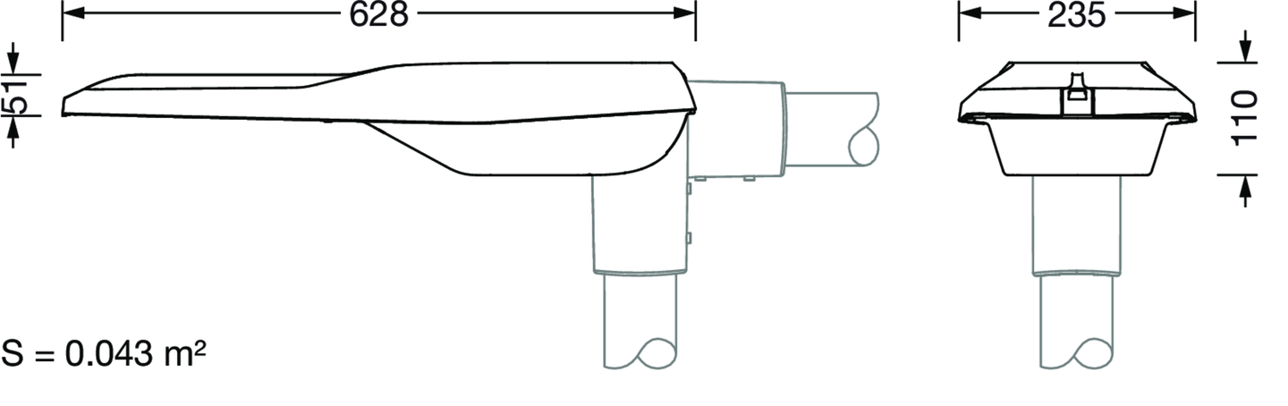 Streetlight SL 21 iQ mini, Mastleuchte, primäre Lichtlenkung mit Linse, aus PMMA, primäre lichttechn. Abdeckung: Abdeckung, aus Einscheiben-Sicherheitsglas, klar, Lichtverteilung: S080002, Abstrahlwinkel primär: breit strahlend, Lichtaustritt: direkt strahlend, primäre Lichtcharakteristik: asymmetrisch, Montageart: Aufsatz, Ansatz, Leuchtmittel: LED, Bemessungswerte: 10.820lm | 71,6W | 151,1lm/W (Beginn Lebensdauer); Ende Lebensdauer: 10.820lm | 74,6W; bei 50% Lichtstrom: 5.410lm | 32,7W | 165,4lm/W, Farbtemperatur: 3000K, Farbwiedergabe: CRI > 70, Lichtfarbe: 730, Lichteinstellung 1 (weitere Lichteinstellungen möglich): 100% | 10.820lm | 71,6W | 151,1lm/W | 3.000K (Beginn Lebensdauer); Ende Lebensdauer: 74,6W, Vorschaltgerät: iQ Street-Remote, Steuerung: Street-Remote, Auto-Match, Temp-Guard, Lumen-Switch, Night-Set, Smart-Wire, Light-Fading, Desk-Remote (drahtloses, spannungsfreies Auslesen und Einstellen der iQ-Features in der Werkstatt via anwendungsoptimierter NFC-Funktion/RFID-Funktion), optimierte Konstantlichtstromsteuerung (CLO 2.0), Voreinstellung: Dimmkennlinie linear, Netzanschluss: 220..240V, AC, 50/60Hz, Stoßspannungsfestigkeit: Stoßspannungsfestigkeit: 10kV (Common Mode); 6kV (Differential Mode), Leuchtengehäuse, aus Aluminium-Druckguss, pulverbeschichtet, SITECO eisenglimmer (DB 702S), Korrosivitätskategorie C5 high gemäß DIN EN ISO 12944, Mastflansch bitte separat bestellen, Neigung einstellbar: 0°, 5°, 10°, 15°, Dichtung zerstörungsfrei tauschbar, mehrstufiges Dichtungssystem, Länge: 628mm, Breite: 235mm, Höhe: 110mm, Mastflansch für Zopfmaß: 42mm (Ansatz): 5XC10008XM4, 60/48mm (Ansatz/Aufsatz): 5XC10108XM2, 76/60mm (Ansatz/Aufsatz): 5XC10108XM1, Schutzart (gesamt): IP66, Schutzklasse (gesamt): SK II (Schutzisoliert), Prüfzeichen: CE, ENEC, ENEC+, VDE, Schlagfestigkeit: IK10, zul. Betriebsumgebungstemperatur für Außenanwendungen: -40..+50°C, normgerechte Platz- und Straßenbeleuchtung, Verpackungseinheit: 1 Stück