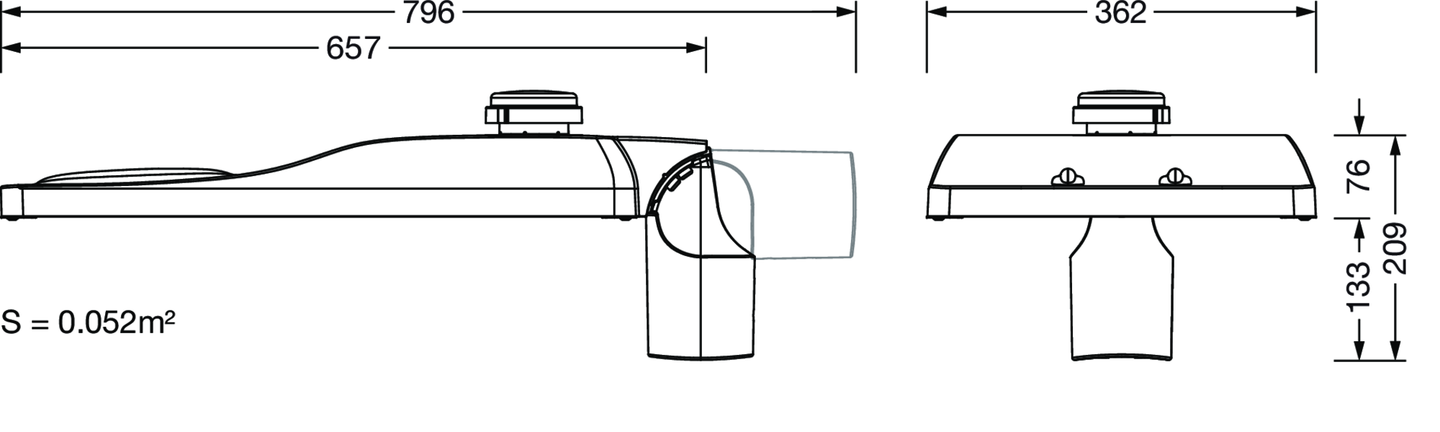 Aluminium-Druckguss, pulver­beschichtet, SITECO eisenglimmer (DB 702S), Dichtung zerstörungsfrei tauschbar, mehrstufiges Dichtungssystem, Neigung: -15°..+20° (Aufsatz) | -20°..+20° (Ansatz), einstellbar in 5° Schritten, keine Dichtung auf der Leuchtenoberseite