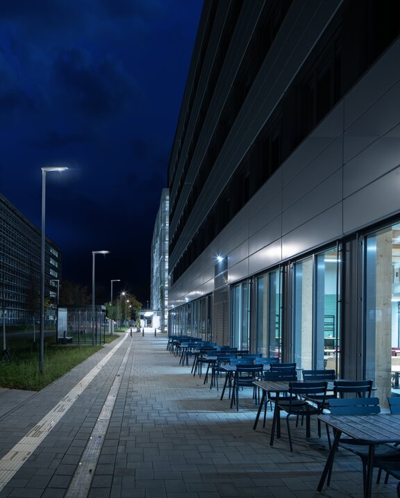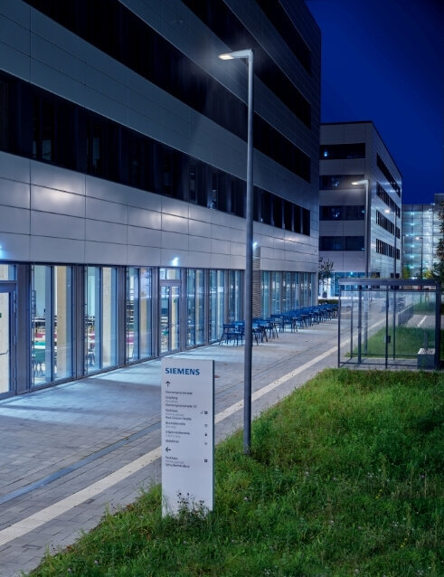 SL 11 iQ sorgt für ein stimmiges Erscheinungsbild und bietet zudem eine klare Orientierung. Wege, Plätze und Erschließungsbereiche sind gleichmäßig ausgeleuchtet, sodass sich Mitarbeiter und Besucher jederzeit sicher fühlen.