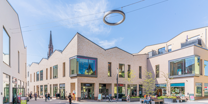 Seilleuchten aus der Manufaktur Bergmeister schweben schwerelos zwischen Hausreihen - eine große Herausforderung für den Leuchtenbauer. Der Vorteil der abgehängten Leuchten: Sie bringen den Lichtpunkt in die Mitte eines Platzes. Das Innenleben der Leuchten lässt für Stadtplaner keine Wünsche offen: entblendetes, nach unten gerichtetes Licht mit unterschiedlichen Helligkeitsniveaus, der Frequenzbereich unschädlich für Insekten, jede Komponente nach Wunsch einzeln über DALI ansteuerbar.