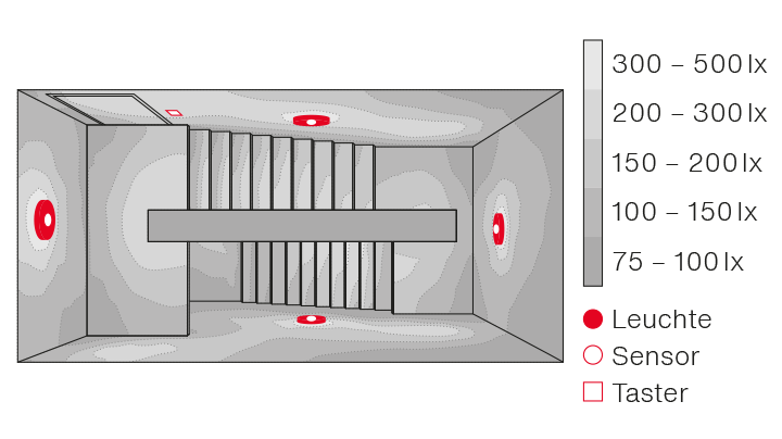 • Sicherheitsbeleuchtung ist für Verkehrsflächen Pflicht.
