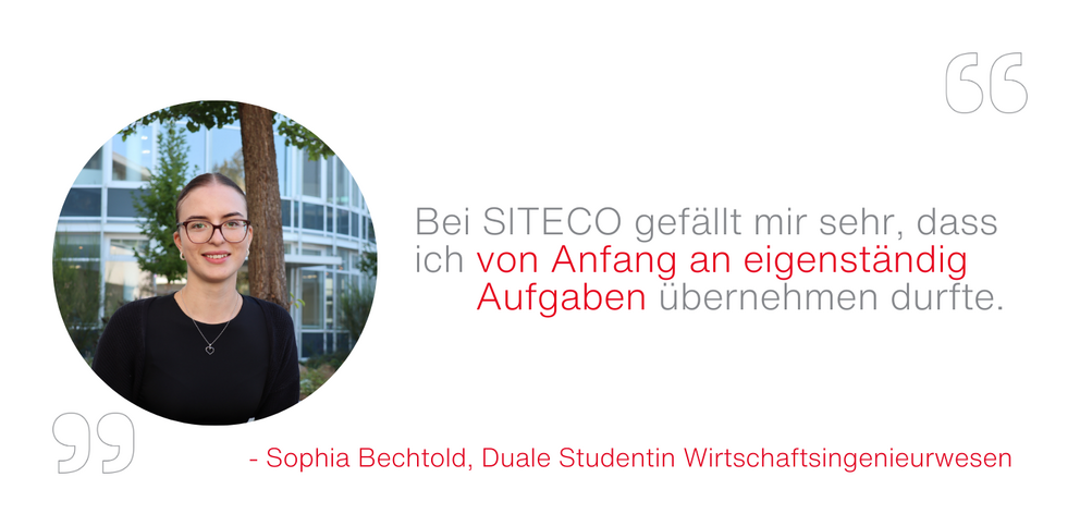 Deine Entwicklung liegt uns am Herzen – weit über Dein Studium hinaus. Bei uns findest Du nicht nur einen Job, sondern einen Ort, an dem Du kontinuierlich wachsen, Deine Fähigkeiten ausbauen und Dein volles Potenzial entfalten kannst. Wir investieren in Deine Zukunft und begleiten Dich auf Deinem Weg zum Erfolg. Dabei profitierst Du nicht nur von unserer hauseigenen SITECO Akademie, sondern auch von persönlichen Buddy- und Mentoringprogrammen, die Dir wertvolle Einblicke und Unterstützung bieten.