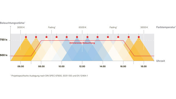 Licht beeinflusst unseren Körper visuell, emotional und biologisch. Es ist Taktgeber für unsere innere Uhr. Mit Farbtemperatur, Beleuchtungsstärke und Lichtdynamik können Wohlbefinden und Leistungsfähigkeit deutlich gesteigert werden. Wir haben einen Ansatz entwickelt, der alle relevanten Faktoren für eine beste Wirkung berücksichtigt: SITECO HCLlive.