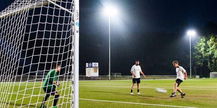 Training mit gedimmter Halbfeldbeleuchtung, Derbyspiel mit brillanter Farbwiedergabe. Jederzeit anpassbar – mit unserer App lassen sich Szenen flexibel und einfach steuern.
