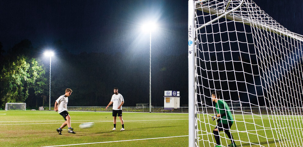Beleuchten Sie optional nur eine Spielfeldhälfte. Wenn Sie nicht das gesamte Feld brauchen, können Sie so Energie sparen.