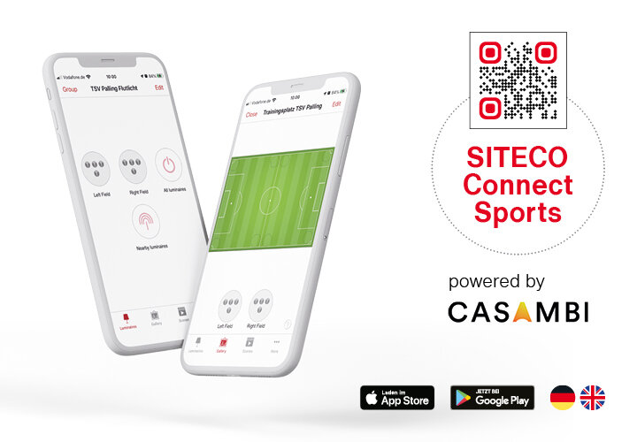 SITECO Connect Sports macht Lichtsteuerung spielend einfach und hilft zugleich dabei, Energie zu sparen.