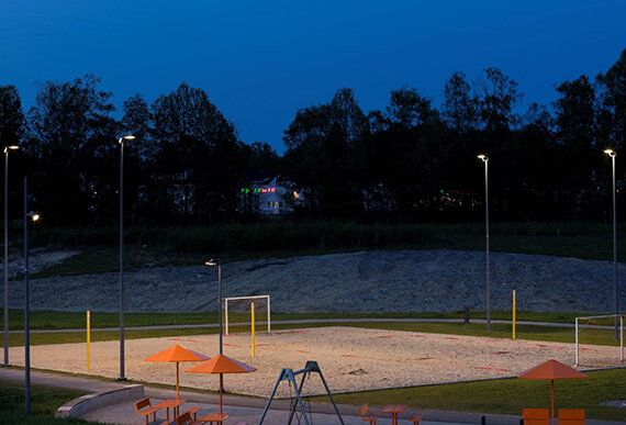 Der Sport- und Aktivitätenpark Kløfta bietet eine breite Palette verschiedener Sportarten wie Fußball, Tennis, Beachvolleyball und Leichtathletik. Jede Sportart hat ihre eigenen individuellen Anforderungen, auch in Bezug auf die Beleuchtung.