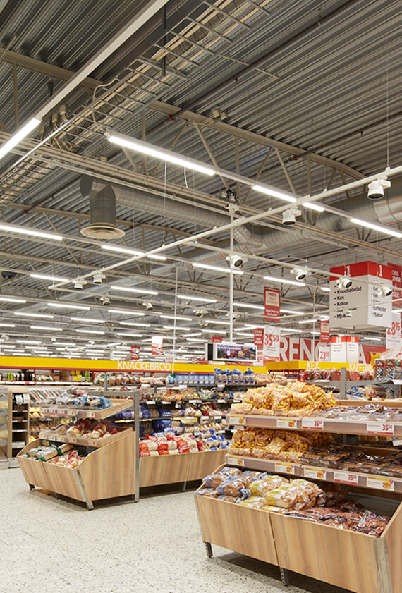 „Und die Leuchten blenden nicht – noch ein großer Vorteil für unsere Kunden“, ergänzt Inhaber und Marktleiter Tommy Fransson. Er profitiert auch hinter den Kulissen von der neuen Lichtlösung. Im Lager beispielsweise steuern Bewegungssensoren die Beleuchtung bedarfsgerecht – mit direkter Auswirkung auf die laufenden Betriebskosten.