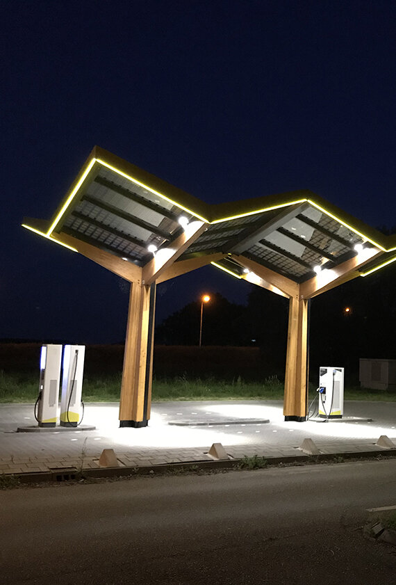 Auf der Straße ist die Zukunft elektrisch. Beim Thema Licht steht SITECO für die Zukunft. Warum also nicht beides zusammenbringen? Genau das passiert beim niederländischen Unternehmen FastNed. Der Betreiber von Schnelllade-Stationen für Elektroautos hat knapp 50 seiner Strom-Tankstellen mit dem Floodlight FL 20 micro von SITECO ausgestattet, weitere 35 Stationen in den Niederlanden, Belgien, UK, Deutschland und der Schweiz folgen. In nur 15 Minuten lässt sich an den Hubs eine Reichweite von 300 Kilometern laden – mit Strom rein aus erneuerbaren Energien. Ein perfekter Match für SITECO: Die LED-Strahler verbrauchen nur sehr wenig Strom und bieten ein nachhaltiges Produktkonzept mit tausch- und upgradefähigen Komponenten. Der langlebige Betrieb bei Wind und Wetter ist selbstverständlich. Zudem integriert sich die SITECO-Beleuchtung dank schwarzer Sonderlackierung auch optisch perfekt in die markante Dachkonstruktion mit Solarpanelen. Ein echtes Dreamteam für eine grüne Zukunft.