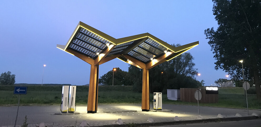 Auf der Straße ist die Zukunft elektrisch. Beim Thema Licht steht SITECO für die Zukunft. Warum also nicht beides zusammenbringen? Genau das passiert beim niederländischen Unternehmen FastNed. Der Betreiber von Schnelllade-Stationen für Elektroautos hat knapp 50 seiner Strom-Tankstellen mit dem Floodlight FL 20 micro von SITECO ausgestattet, weitere 35 Stationen in den Niederlanden, Belgien, UK, Deutschland und der Schweiz folgen. In nur 15 Minuten lässt sich an den Hubs eine Reichweite von 300 Kilometern laden – mit Strom rein aus erneuerbaren Energien. Ein perfekter Match für SITECO: Die LED-Strahler verbrauchen nur sehr wenig Strom und bieten ein nachhaltiges Produktkonzept mit tausch- und upgradefähigen Komponenten. Der langlebige Betrieb bei Wind und Wetter ist selbstverständlich. Zudem integriert sich die SITECO-Beleuchtung dank schwarzer Sonderlackierung auch optisch perfekt in die markante Dachkonstruktion mit Solarpanelen. Ein echtes Dreamteam für eine grüne Zukunft.