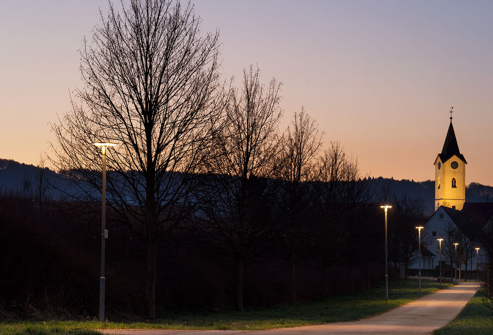 Balgheim ist eine kleine, aber besonders fortschrittliche Gemeinde mit rund 1.250 Einwohnern im Landkreis Tuttlingen. Seit 2015 beteiligt sich Balgheim am Nachhaltigkeitsprojekt des Landes Baden-Württemberg. Eines der wichtigsten Ziele: Energie sparen. Um den Bürgern mit gutem Beispiel voranzugehen, beschloss der Gemeinderat auf Vorschlag des Bürgermeisters die bestehende NAV-Straßenbeleuchtung zu sanieren und komplett auf LED-Technologie umzustellen. SITECO- Straßenleuchten werfen nun ein besonders modernes und nachhaltiges Licht auf Balgheim.
